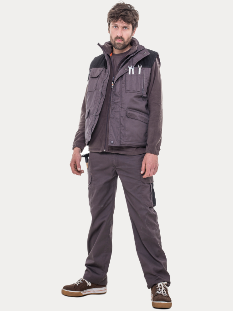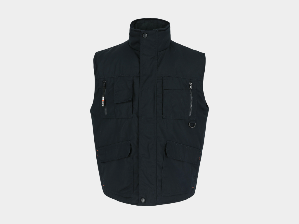 - Multi-pocket waterafstotende bodywarmer met fleece kraag