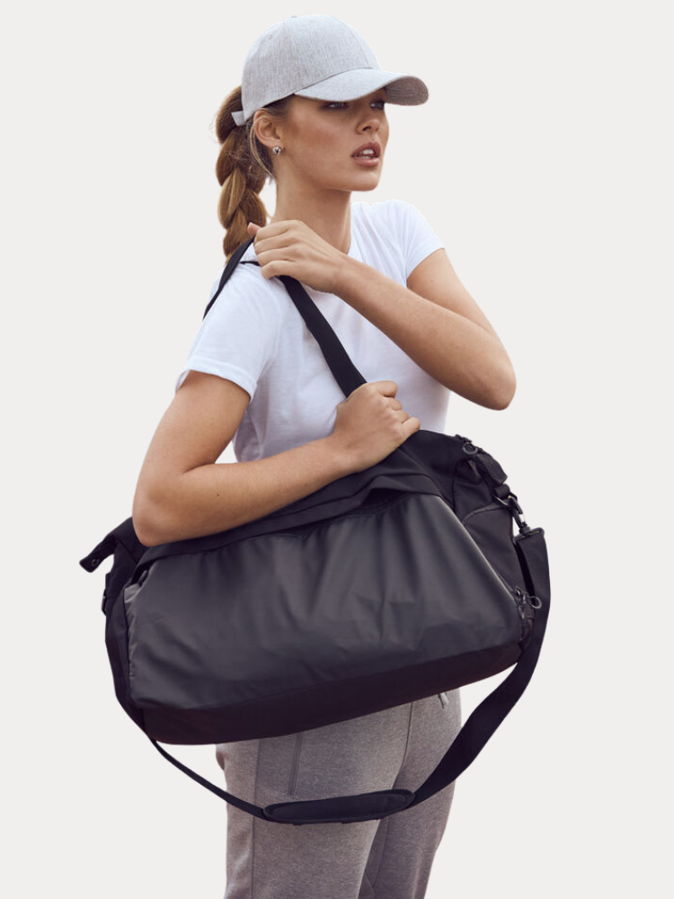 Veelzijdige duffle bag met goede ventilerende eigenschappen, goed in te zetten als bijvoorbeeld sporttas. De tas is voorzien van diverse zakken en compartimenten voor het overzichtelijk opbergen van uw spullen. Een van de compartimenten is goed te gebruiken om bijvoorbeeld een handdoek of schoenen in op te bergen. De tas is uitgerust met een stevige schouderband met een zakje voor bijvoorbeeld een visitekaartje. Afmeting en volume: 48x25,5x28,5cm ≈ 34L