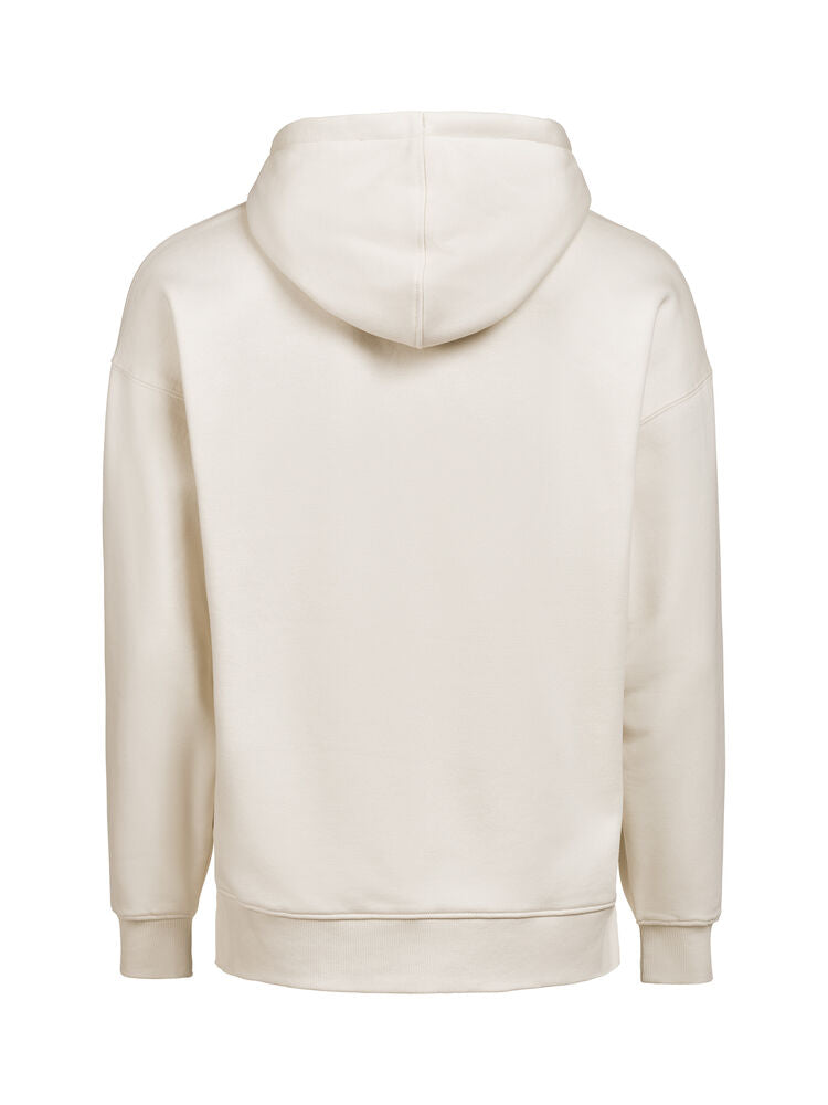 Deze unisex hoodie heeft een coole, losse pasvorm en is gemaakt van een mix van 80% biologisch katoen en 20% gerecycled polyester. De stof van 350 g/m² voelt zacht aan dankzij de enzymenwas, ideaal voor de hele dag comfort. Ontworpen met een verstelbare capuchon met trekkoord, geribde 2x1 boorden en zoom.